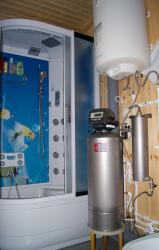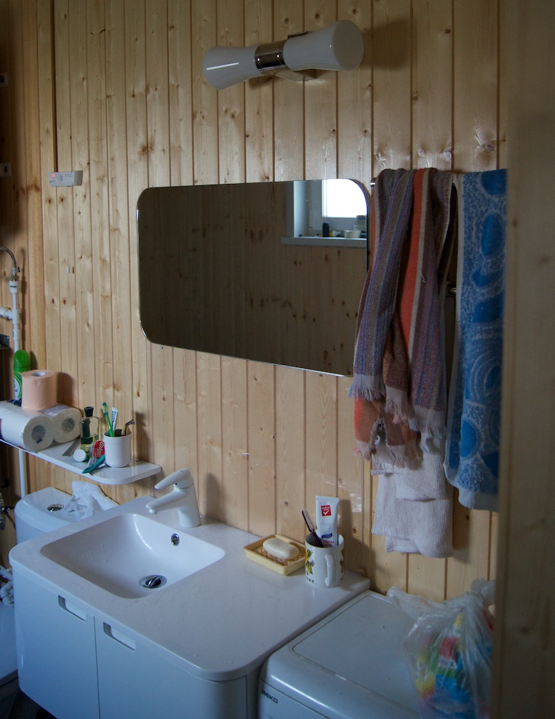 Сортиро-душевая получилась длинная и узкая, поэтому влезла только на две фотки, да и то не вся.