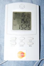 Ну и самое главное. Температура в холодной комнате. Ночью дрова прогорели, а на соляру котел еще не переключается. И тем не менее, после -9 ночью, в полу-протопленном доме, в не до конца утепленной комнате...
