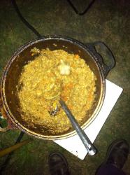 Я спьяну обещал приготовить им плов, что и пришлось исполнить (сразу скажу, что получилась хрень, хотя народ и хвалил). Кстати, это был первый эксперимент в готовке плова на открытом огне.