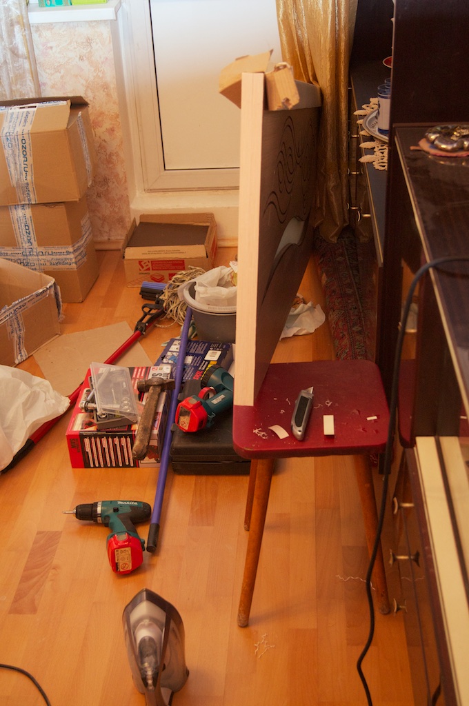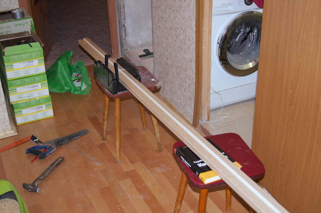 На все, как мне кажется, ушло часов 8, с учетом того, что я еще параллельно ездил по магазинам и грунтовал стены и пол.